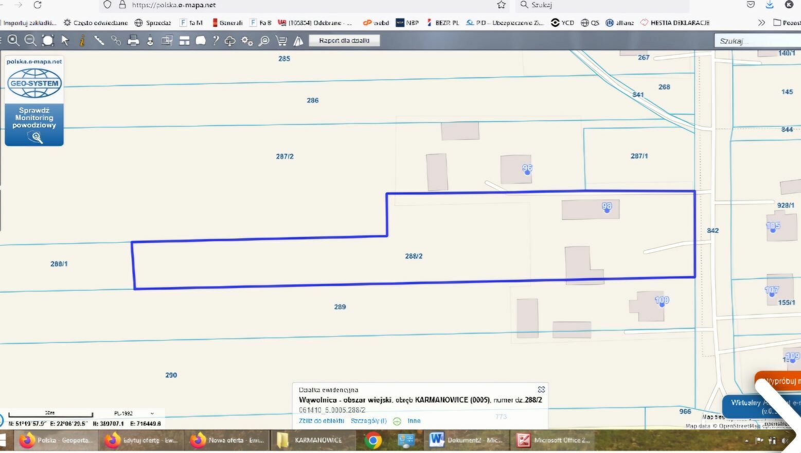 NR działki 288/2